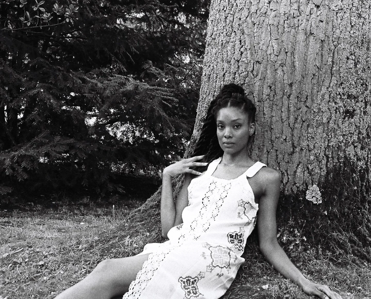 Nature as set. Body as form. Fabric as story. This image channels a grounded femininity through delicate textures and contemplative stillness - Shot by Liorah Maarek