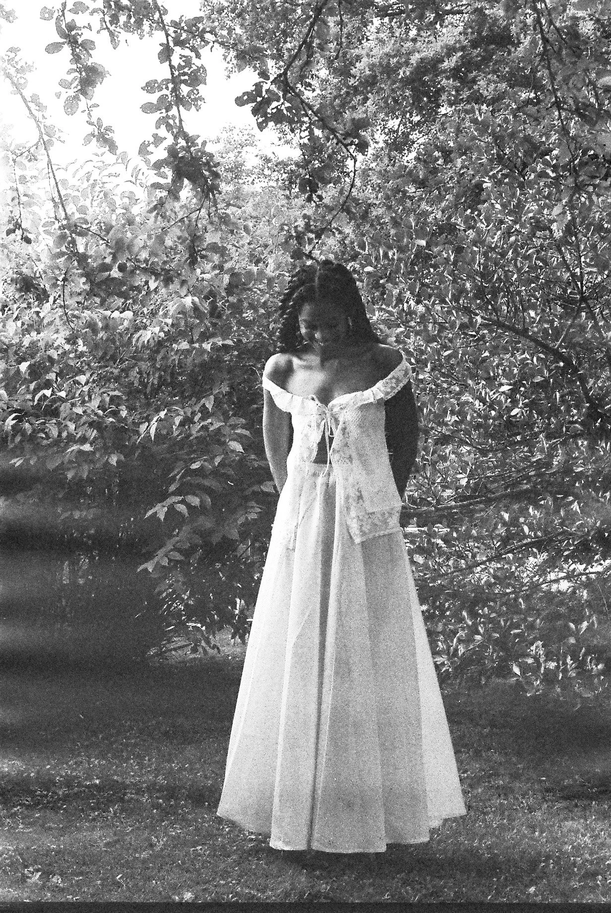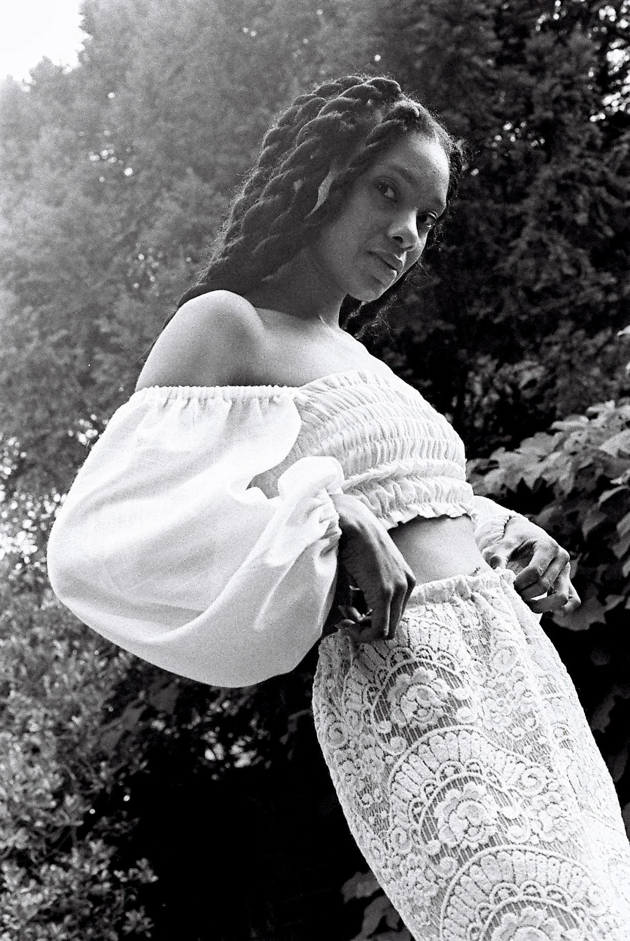 A timeless black and white editorial celebrating softness, texture, and presence. Shot on film, these portraits evoke quiet strength through lace, linen, and gaze - Shot by Liorah Maarek